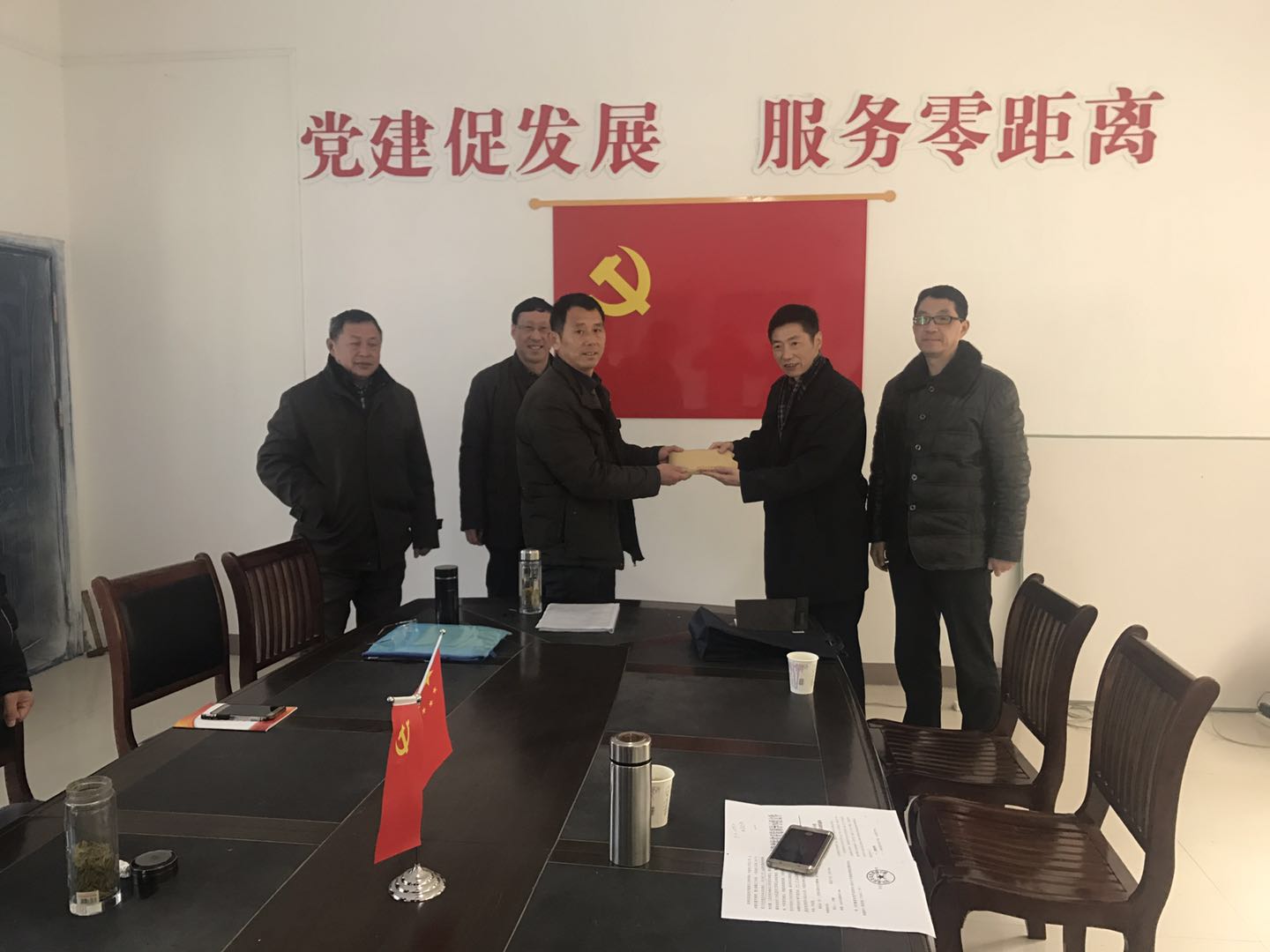 2018年2月7日我司總經理焦祥靜同志陪同安慶市工商聯(lián)領導前往宿松縣陳漢鄉(xiāng)河口村慰問扶貧工作隊,并向河口村村委會捐贈兩萬元。
