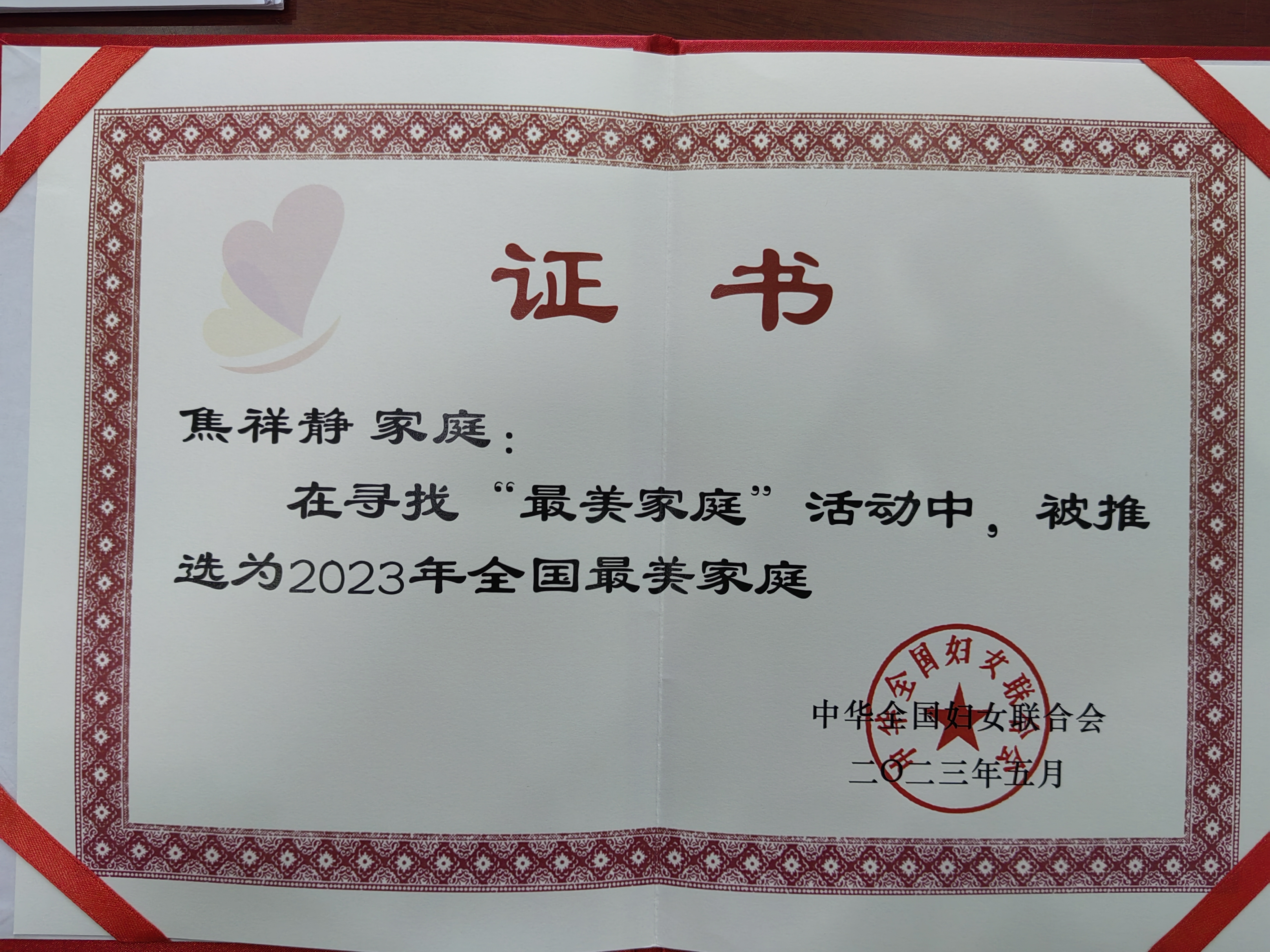 我司總經(jīng)理、法人代表——焦祥靜及其家人入選“全國最美家庭”