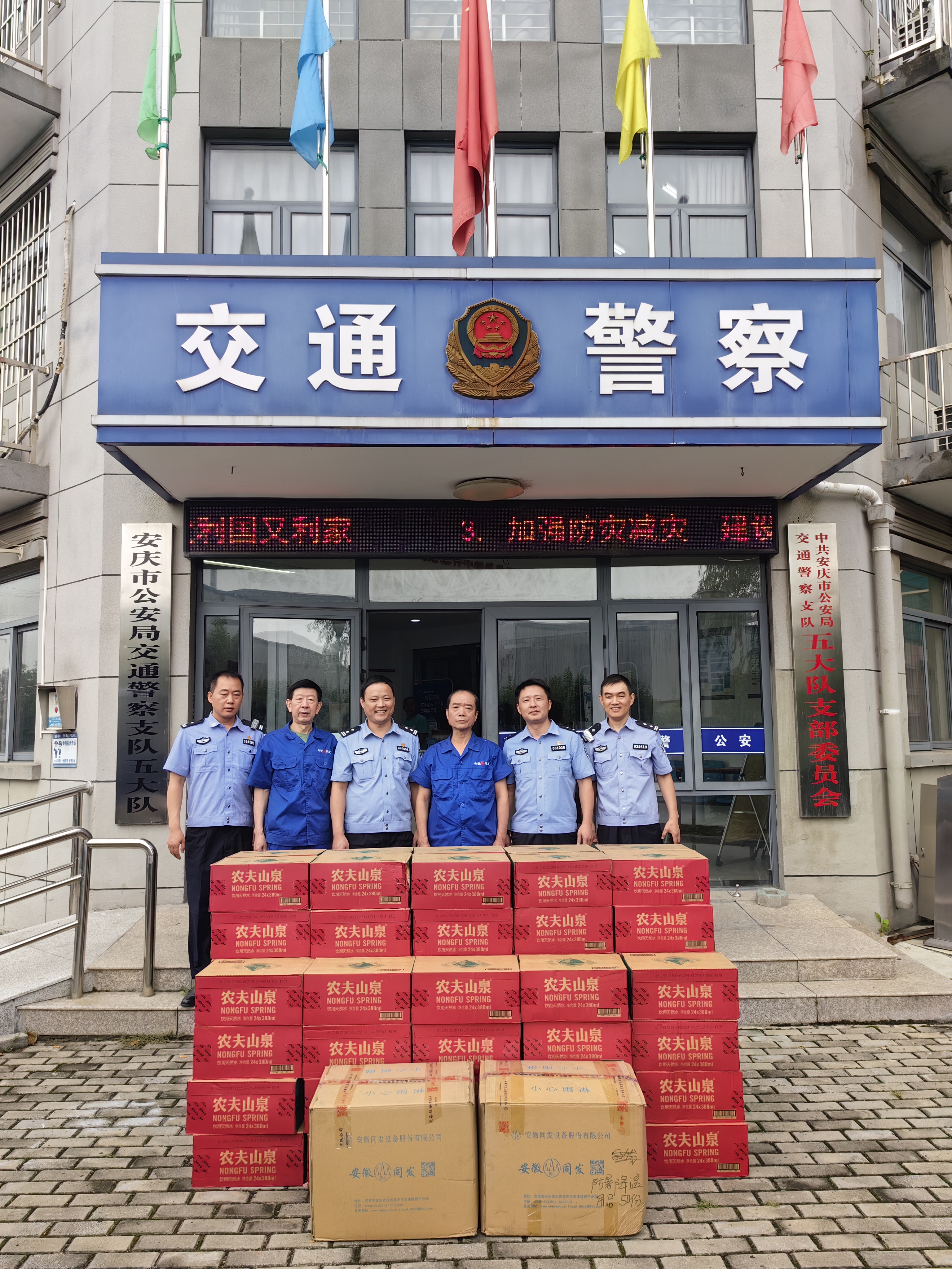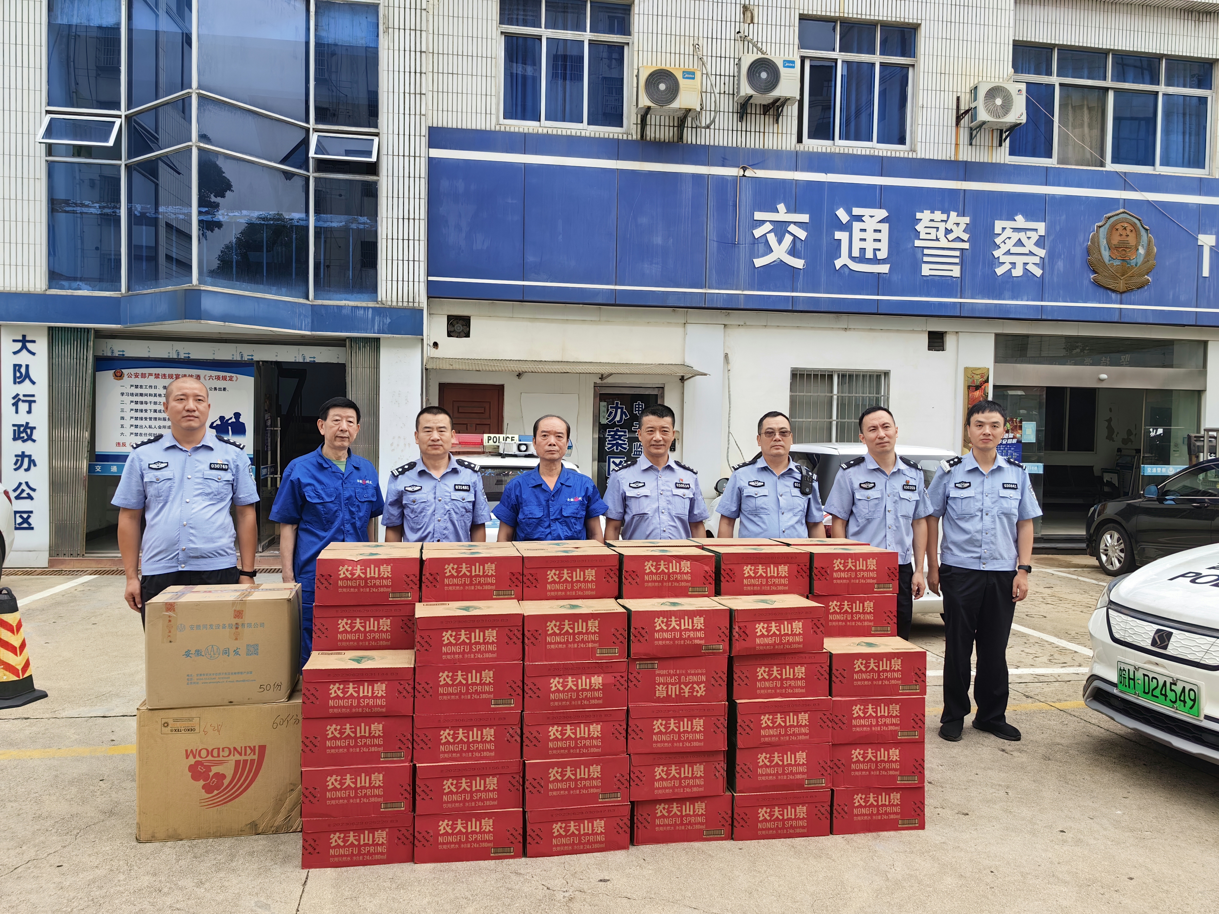 近日, 我司副總經(jīng)理黃勇同志一行代表公司來到公安局交警大隊二大隊、四大隊和五大隊分別進(jìn)行慰問,為交警們送去飲用水,給他們的夏日送去一絲清涼。